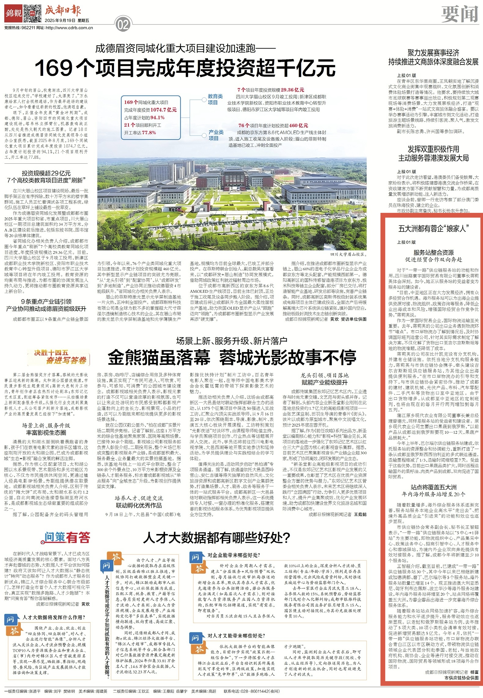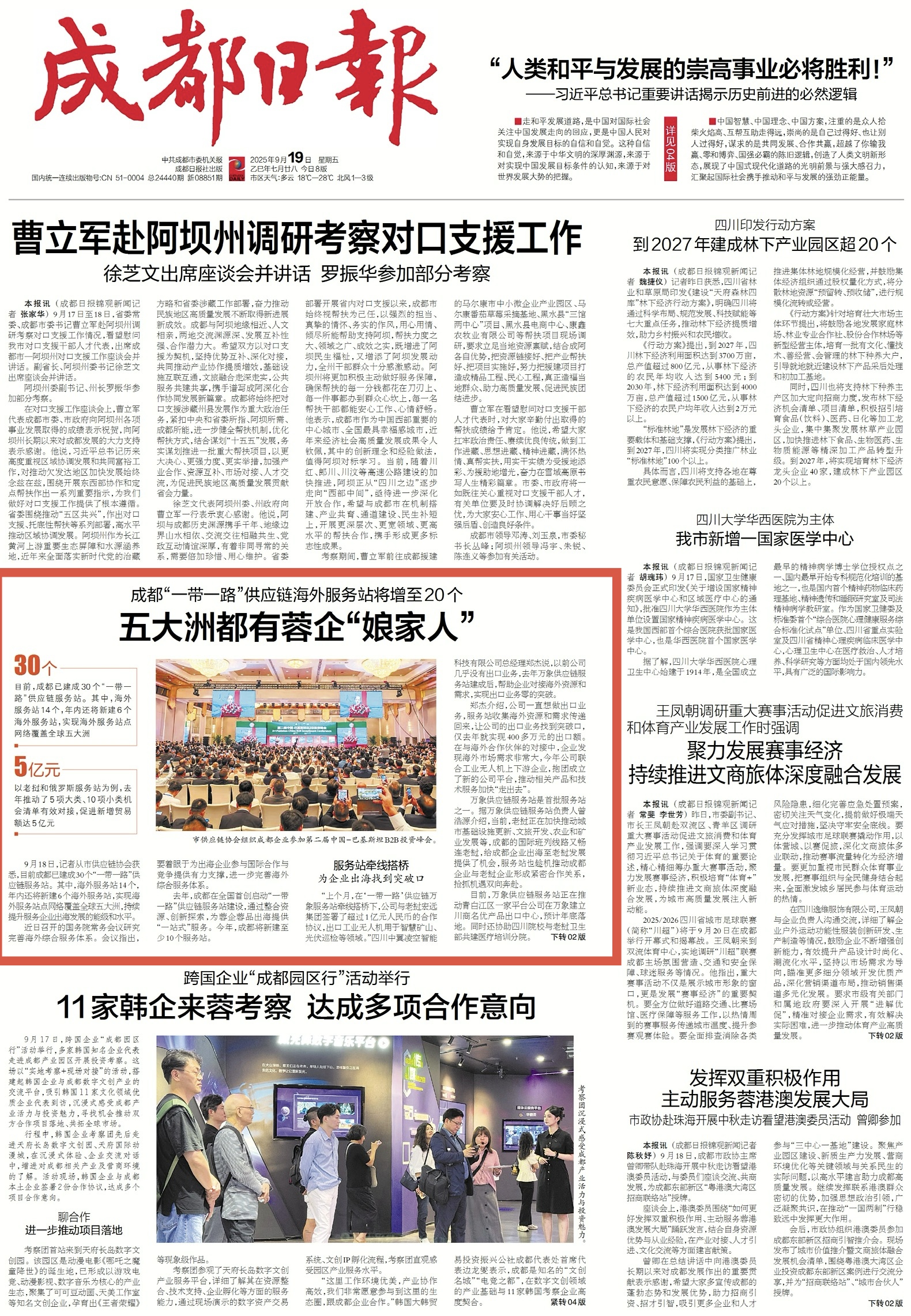9月18日,记者从市供应链协会获悉,到目前为止,成都已建成30个“一带一路”供应链服务站。其中,海外服务站14个,年内还将新建6个海外服务站,实现海外服务站点网络覆盖全球五大洲,通过完善海外综合服务体系,持续提升服务企业出海发展的能级和水平。