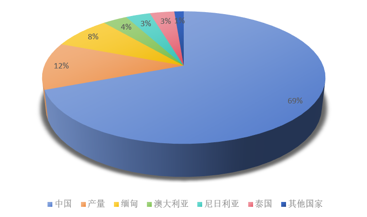 缅甸:产量 4.5 万吨,占比超过 7.95%,排名第三。