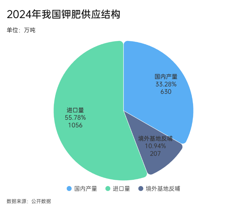 2024年,我国国内钾肥产量630万吨、占比33.28%,老挝基地反哺量207万吨、占比10.94%,进口量1056万吨、占比55.78%。随着中资企业在老挝钾肥项目的开发深入,2027年老挝钾肥年产规模将达到1000万吨以上,将覆盖我国当前50%以上的钾肥进口需求。