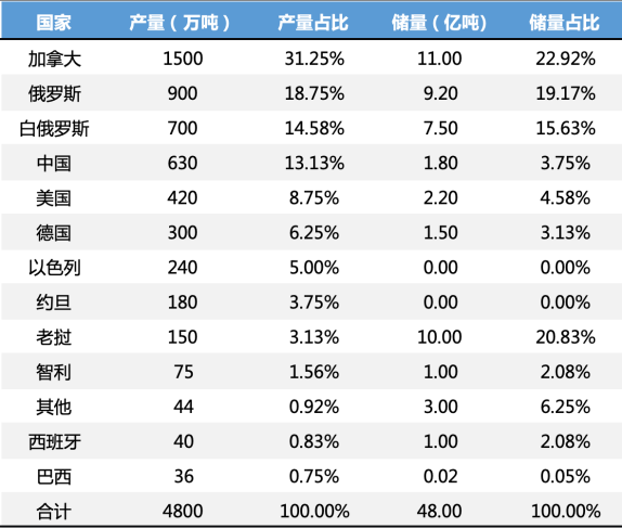 2024年全球钾肥产量、储量情况