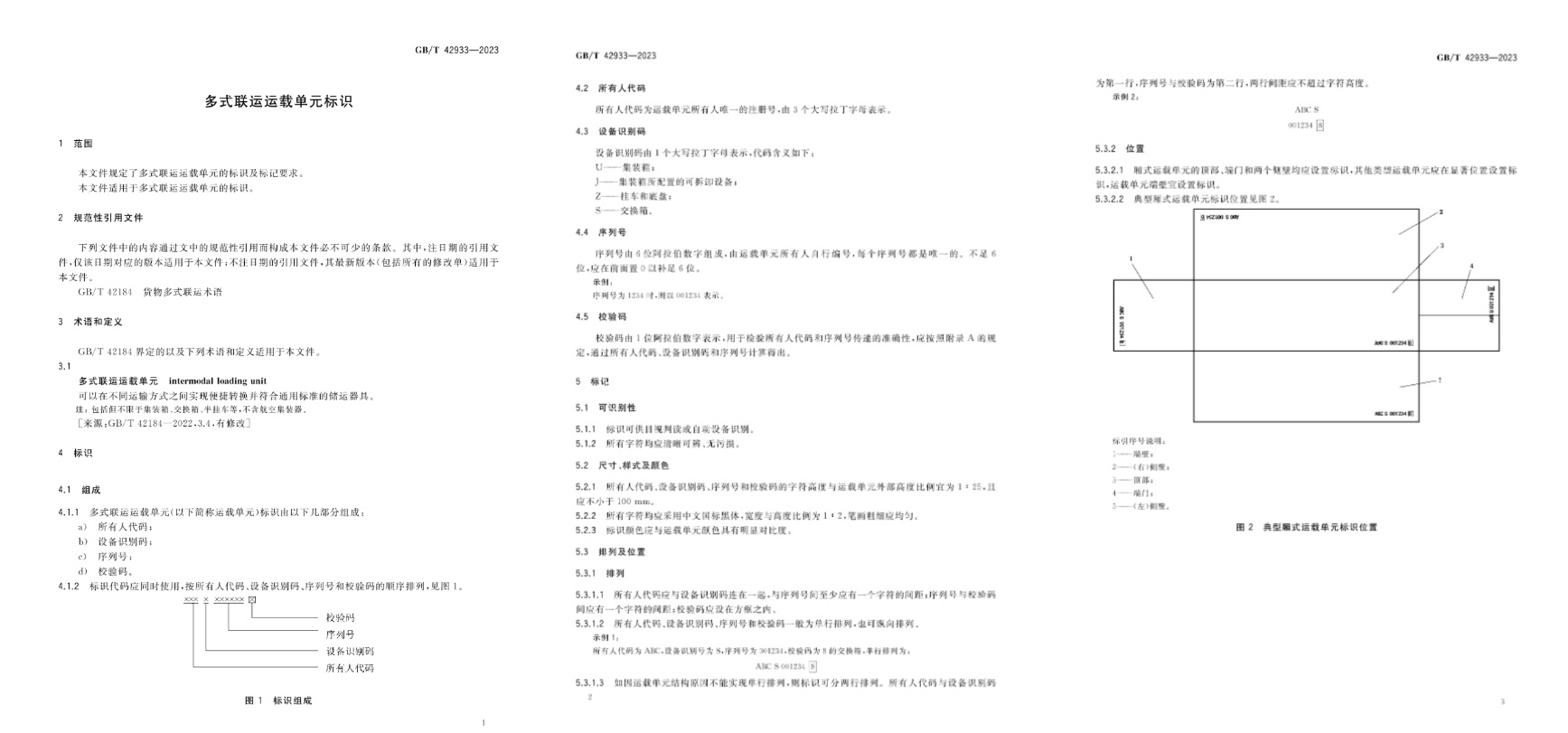 ▲《多式联运运载单元标识》(GB/T 42933-2023)