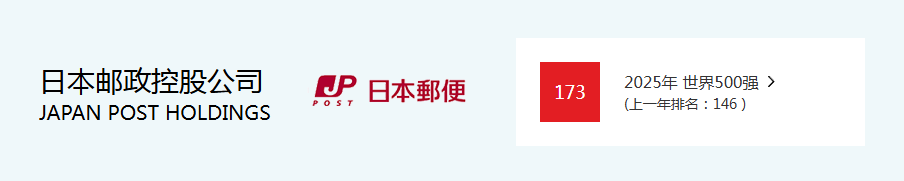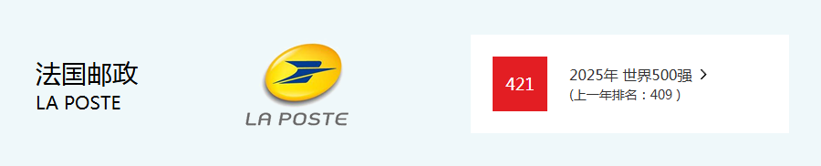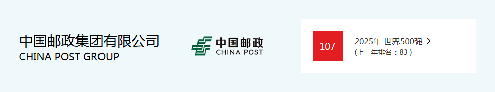 中国邮政、敦豪集团、美国邮政、日本邮政、法国邮政均上榜。其中中国邮政以 975.44 亿美元的收入排名 107 位,虽跌出百强,但仍居世界邮政首位;敦豪集团排名 124 位;美国邮政排名 157 位;日本邮政排名 173 位;法国邮政排名 421 位。