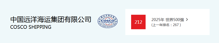 中远海运、马士基上榜。中远海运以 648.63 亿美元的收入排名 212 位;马士基以 554.82 亿美元的收入排名 262 位。
