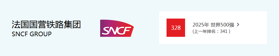 德国铁路股份公司和法国国营铁路集团入围。德国铁路股份公司 排名 296 位,法国国营铁路集团排名328 位。