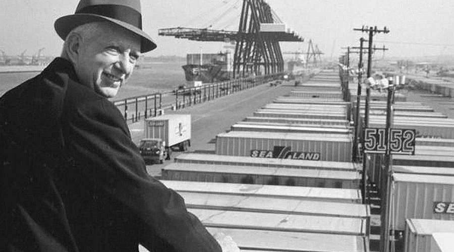 麦克莱恩从做卡车司机起家,很有生意头脑,尤其在节省运输成本上非常有想法,年纪轻轻已经拥有一家运输公司。1940年,美国国内的物流运输已经非常繁荣,到二战结束的时候,麦克莱恩也赚得盆满钵满,他的公司已经成为全美第三大运输公司。他的运输线路主要是美国东线,沿着大西洋。由于高速公路常常一堵好几天,让他苦恼不已。他就思考能否建一个码头,让车直接上船,避开高速公路?后来他想到,船舶如果只运送货车的后半段肯定更划算,那“后半段”下的车轮可不可以也省掉,只运送方形的车厢?这个“车厢”的理念就是后来的集装箱了。